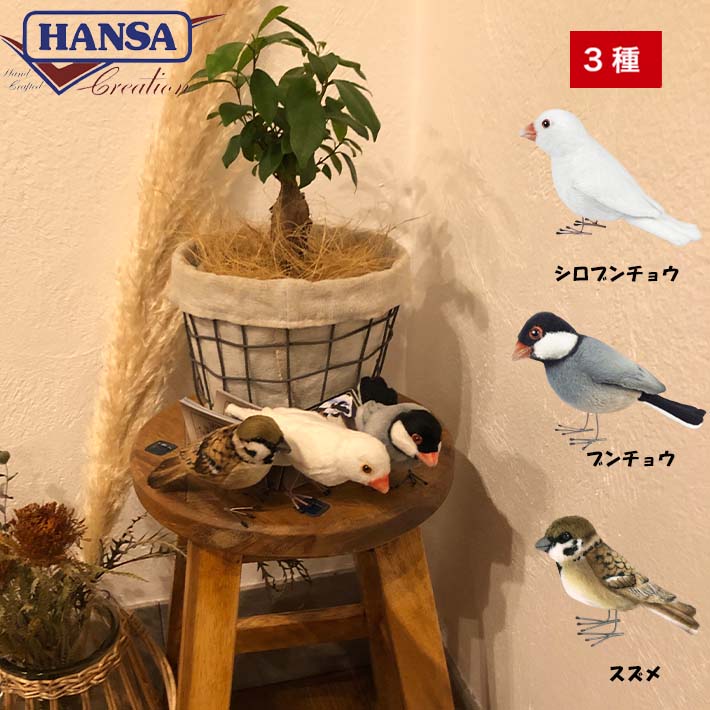 【マラソン期間P5倍+5%オフクーポン発行中】HANSA リアル 小鳥 3種類 鳥 シロブンチョウ ブンチョウ スズメ ディスプレー インテリア 置物 贈り物 玄関 リアルアニマル 可愛い プレゼント アニマル ことり おしゃれ ぬいぐるみ ディスプレイ