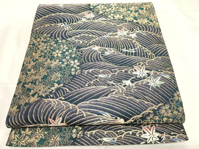 平和屋着物◎全通柄袋帯 竜田川文 金糸 正絹 逸品 BAAV7957yc