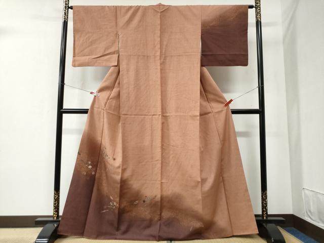 平和屋着物▼上質な小紋 地紋起こし 竜田川文 暈し染め 銀糸 正絹 逸品 CABC2537vp