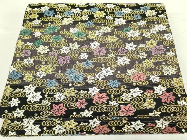 平和屋着物●六通柄袋帯 唐織 優雅 竜田川 一世風美 黒地 金糸 正絹 逸品 DABB7822op