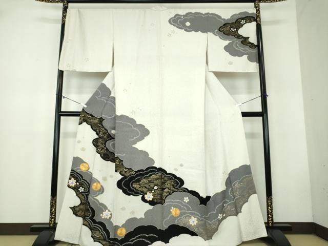 平和屋着物●訪問着 駒刺繍 絞り 雲取り竜田川花文 金彩 正絹 逸品 DABB4737ps