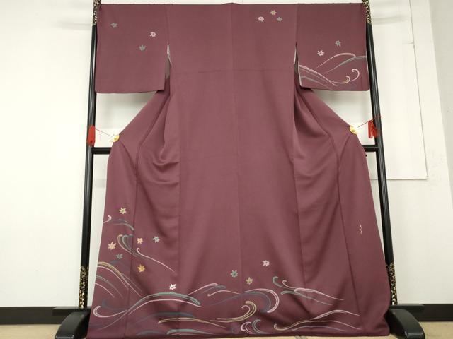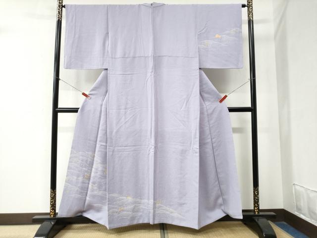 平和屋着物●上質な色無地 竜田川地紋 藤紫色 正絹 逸品 AABE7057cs