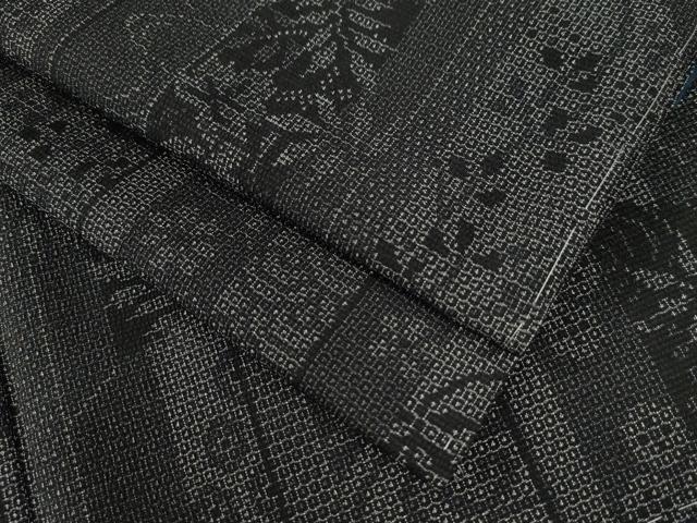 平和屋着物●本塩沢 110亀甲 竜田川吉祥花唐草文 黒地 健勝苑扱い 正絹 逸品 未使用 CAAZ3745yc