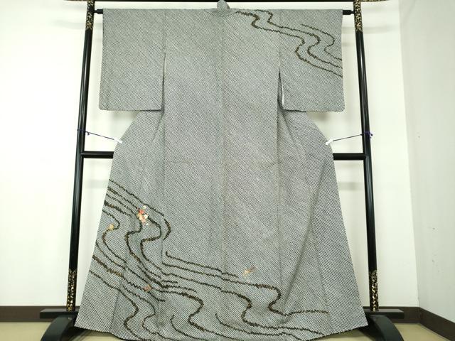 平和屋着物●上質な小紋 型染め 竜田川草花文 鬼しぼ縮緬 正絹 逸品 CABB4037yc