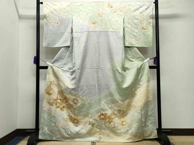 平和屋着物■訪問着 竜田川花蝶文 暈し染め 金銀彩 正絹 逸品 BAAV8793hv