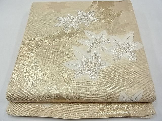 平和屋着物◎六通柄袋帯 唐織 竜田川草葉文 金銀糸 正絹 逸品 BAAW3331hv