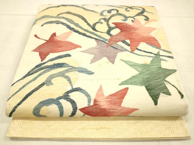 平和屋着物*夏物 六通柄袋帯 竜田川文 金糸 正絹 逸品 AAAY3307jh