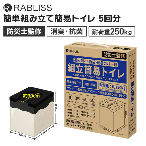 【在庫あり即納】防災士監修 RABLISS 小林薬品 組立簡易トイレ 凝固剤付き 5回分 非常用トイレ 組み立て式 防災グッズ 防災 非常用 備蓄品 防災セット 持ち出し 備品 被災 災害 台風 断水 避難 アウトドア 地震対策 家庭用 KO369