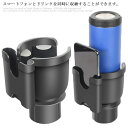 【スーパーセール!30%OFF】車 ドリンクホルダー カップホルダー 車載用 2in1 拡張式 ダブルカップホルダー 回転式 マルチドリンクホルダー 2本収納 コンソール取付 紙パック タンブラー ペットボトル スマホ対応 増設用 多機能 車内収納 黒
