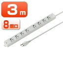 電源タップ 雷ガード マグネット 8個口 3m 3ピン 抜け止め 通電確認ランプ 絶縁キャップ付き アース端子 固定穴 無鉛はんだ グレー 簡易ビニールパッケージ TAP-K8SP-3