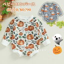 ハロウィン 仮装 衣装 ベビー服 新生児 ロンパース ボディースーツ 子供 女の子 男の子 赤ちゃん 綿混 長袖 足なし 春秋 幼児 スナップボタン ゴースト 幽霊 かぼちゃ柄 コスプレ コスチューム 保育園 おしゃれ かわいい オレンジ 黄色 100日 6か月 1歳 50cm 60 70 80 90