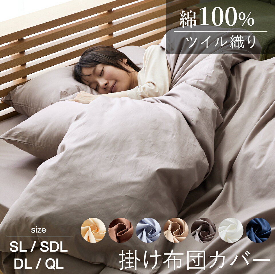 ■この商品の仕様特長:通常よりも密度を上げて織り上げているため、シワになりにくく耐久性の高い綿100%ツイル生地を使用。毎日のようにお洗濯しても大丈夫。毛玉にもなりにくいのでサラリと快適です。生地の密度が高いので、ダニ・ホコリなどが通る隙間がなく、防虫剤を使うことなく防ダニ効果を発揮します。商品サイズ: ■シングル 幅150cm × 長さ210cm ■セミダブル 幅170cm × 長さ210cm ■ダブル 幅190cm × 長さ210cm ■クイーン 幅210cm × 長さ210cm ■キング 幅230cm × 長さ210cm素材・仕様:綿100%8カ所ズレ防止ひも付き両開きファスナー備考:・配達日指定OK!※北海道・沖縄・離島等一部地域へのお届けは別途送料が発生する場合がございます。また発送予定も変更になる場合があります。※ツイル織りは光沢があるため光や照明によって色味が異なって見える場合がございます。また閲覧環境により誤差がでる場合がございますのでご了承ください。防ダニ コットンツイル 掛け布団カバー 掛布団カバー 掛けカバー 掛カバー 掛ふとんカバー 布団カバー ふとんカバー 綿100% 綿 コットン オールシーズン 春 夏 秋 冬 ダニ防止 ダニよけ 花粉 ハウスダスト アレルギー対策 洗える 丸洗い 洗い替え 無地 おしゃれ 北欧 可愛い かわいい シンプル 寝具 快眠 安眠※ツイル織りは光沢があるため光や照明によって色味が異なって見える場合がございます。また閲覧環境により誤差がでる場合がございますのでご了承ください。 SIZE ボックスシーツのロングサイズはこちら