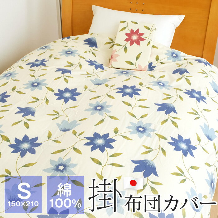 掛け布団カバー 掛けカバー シングル 綿100% コットン 日本製 150×210cm 花柄 布団カバー 8カ所ひも付き 54-4401 デセンテ
