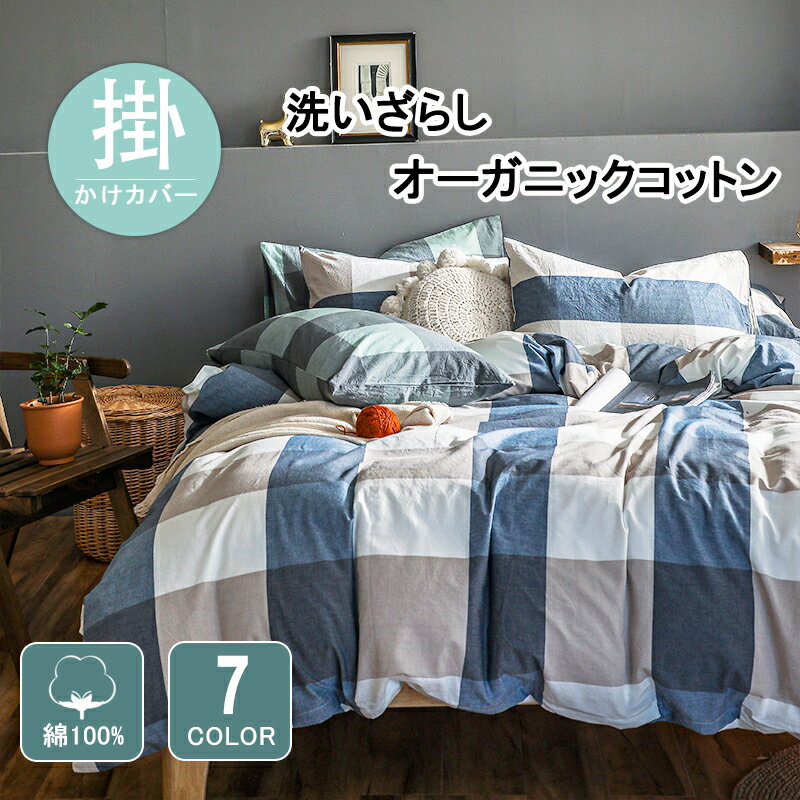 【スーパーSALE】綿100% 掛け布団カバー シングル セミダブル ダブル オーガニックコットン洗いざらし 掛けふとんカバー 8ヶ所ヒモ付き ふとんカバー 布団カバー チェック 柄 洗い替え 防ダニ 防シワ オールシーズン 速乾 通気