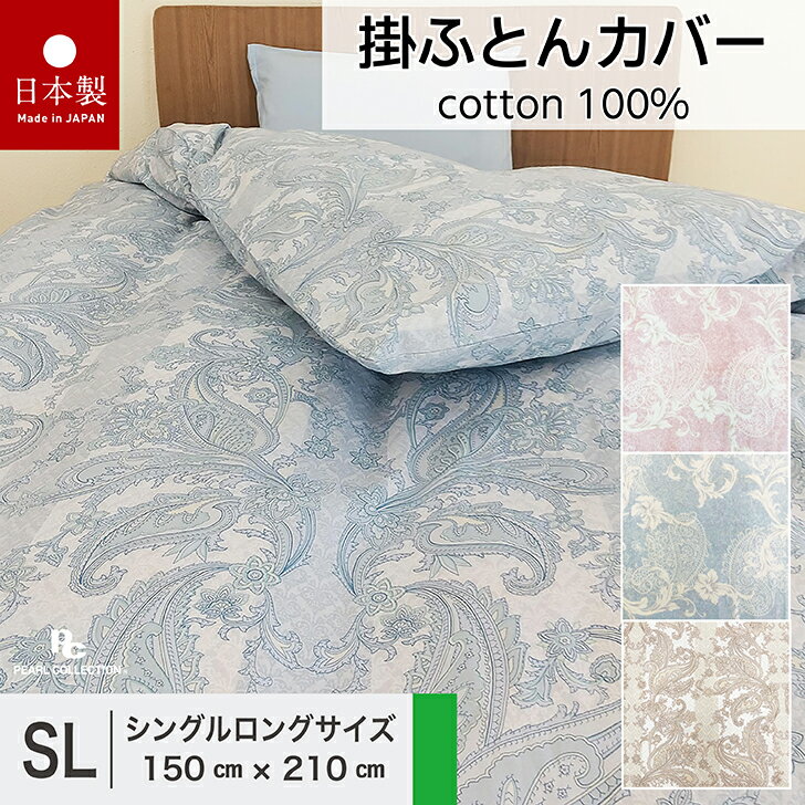 掛け布団カバー シングルロング 綿100% 日本製 150x210 掛けカバー ペイズリー パールコレクション ピンク ブルー 8ヵ所ヒモ付き 全開ファスナー 150×210cm 送料無料 掛布団カバー