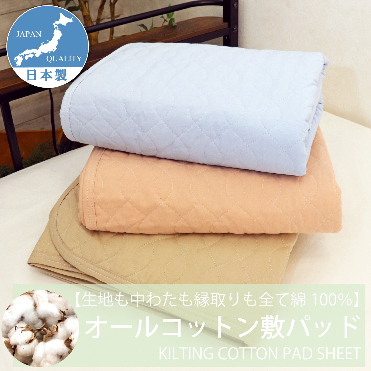 中わたまで全て 綿100% オールコットン 敷きパッド 和晒 日本製 シングル 105x205cm CAMEL PALMS 肌に優しい 吸汗