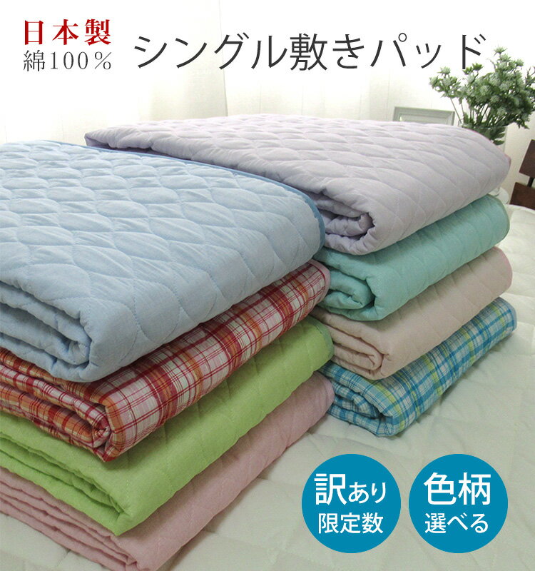訳あり 2000円均一! アウトレット 日本製 綿100% 敷きパッド 【シングル】 色柄えらべる アウトレット 敷きパッド 綿100% 数量限定 夏用 夏 吸汗 吸水 汗 寝汗 清潔 衛生的 丸洗いOK ベッドパッドシングル ベッドシーツ 国産敷パッド