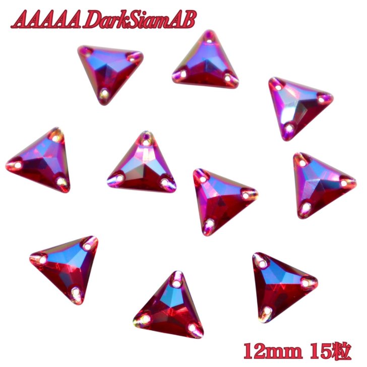 A5ランク 【三角 12mm 15粒 ダークシャムオーロラ DkSiamAB】ガラスビジュー ガラスストーン 高輝度ビジュー ソーオン ソーオンビジュー 衣装パーツ 縫い付けビジュー ソーオンストーン
