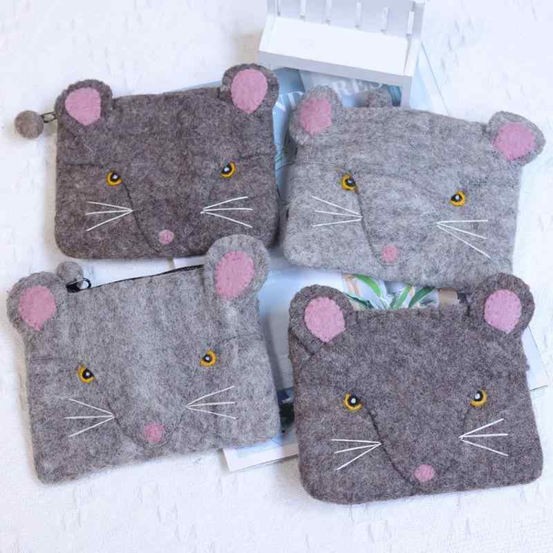 財布 レディース メンズ 兼用 コインケース カードケース 羊毛フェルト ネズミ アニマル柄 レトロ かわいい 収納 親子 お揃い 灰色 ブラウン