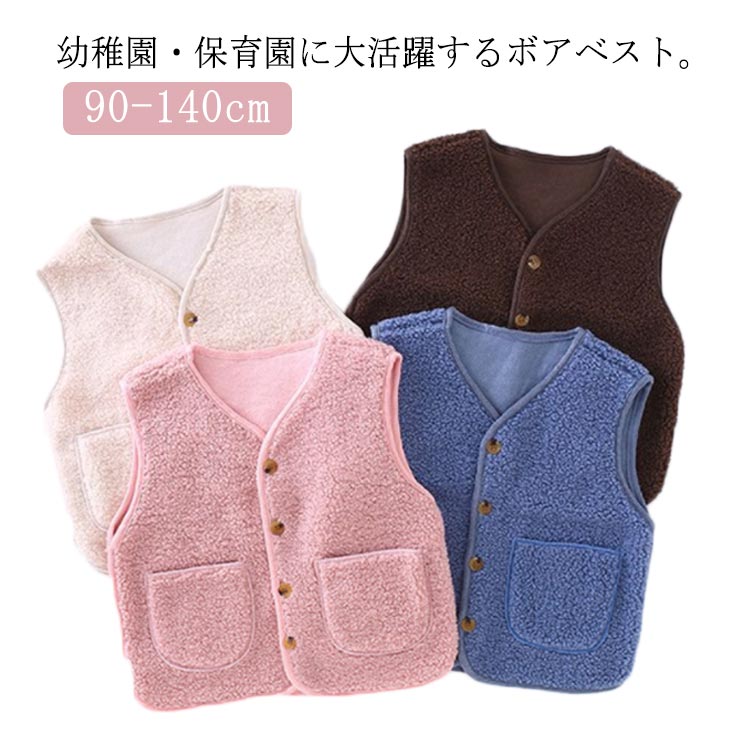 【期間限定全品10%OFF】ボアベスト 子供服 ボア ベスト キッズ 男の子 女の子 4色 トップス アウター ベスト もこもこ ふわふわ ボア ベビーベスト こども 上着 防寒 羽織り 両面起毛 フリース 保育園 幼稚園 通園 無地 可愛い 秋着 80-150 子供の日