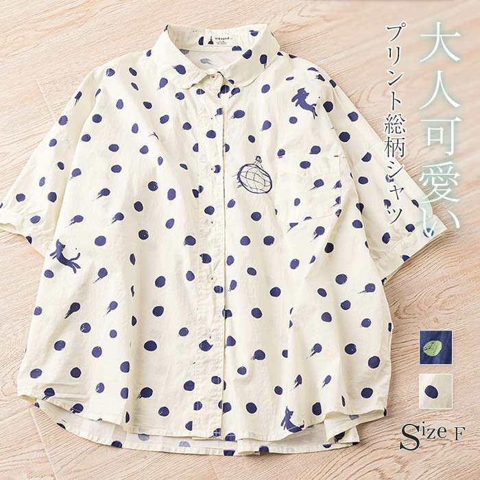 シャツ ドット柄 ブラウス レディース 水玉柄 半袖 シャツ 大人可愛い シンプル ナチュラル 森ガール カジュアル 春 夏 秋 トップス パフスリーブ キレイめ ゆったり 体型カバー 春 夏 秋 大きいサイズ 羽織り 着心地よい 柔らかい 子供の遊び心 送料無料