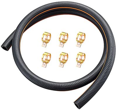 燃料ホース 内径10mm 全長1m フューエルホース ニトリルゴム(NBR)ホース 三重構造 耐油 耐圧 耐熱ホース 高性能ホース 専用ホースクランプ 6個付き 自動車 バイク用 芝刈り機用 (内径10mm)