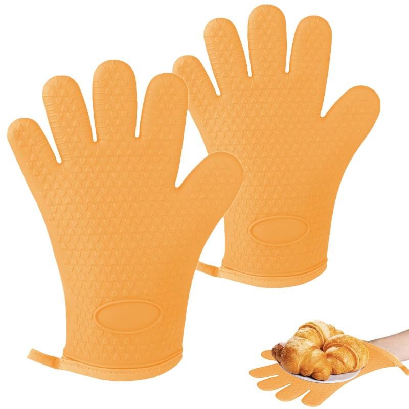 オーブンミトン 耐熱オーブンミトン シリコンミトン 耐熱手袋 ミトン耐熱グローブ 2個セット シリコン製 5本指 防水 滑り止め やけど防止 耐熱温度300℃ 汚れが目立たず 耐久性 オーブンレ【仕様】サイズ:約28*20cm。重量:約145g1個。 耐熱温度:300℃ 5本指+3層保護シリコーン手袋は、表面に耐熱・耐水シリコーンを使用し、中間に肌触りの良い綿のインナーと断熱性のある裏地を使用しており、通常のオーブン手袋より優れた性能を発揮します。【高品質の素材】BPAフリー、無毒で安全な高品質ードのシリコン製。200°のお湯の中に直接手を入れて、食べ物をつまむことができます。鍋つかみを探しているなら、「耐熱グローブ」はいかがでしょう。【お手入れ簡単・滑りにくい】ディンプルメッシュを採用し、優れた滑りにくさを実現 便利な吊り紐付きでフックにかけるのも簡単です。シリコン素材なので、汚れが落ちやすく、丸洗いもできるので清潔に保てます。【使いやすい】5本指のデザインで着脱が容易で、持ち運びも簡単です。鮮やかな色と表裏同じデザインなので、左右を気にする必要がありません。【幅広い用途】耐熱性があり、家庭で焼く、オーブン、電子レンジ、バーベキューなどの調理に使用でき、鉄鍋や食品、冷凍品などの加熱容器の保持に広く使用できます。掃除がしやすく、衛生的で耐久性に優れています。食器洗い乾燥機対応。