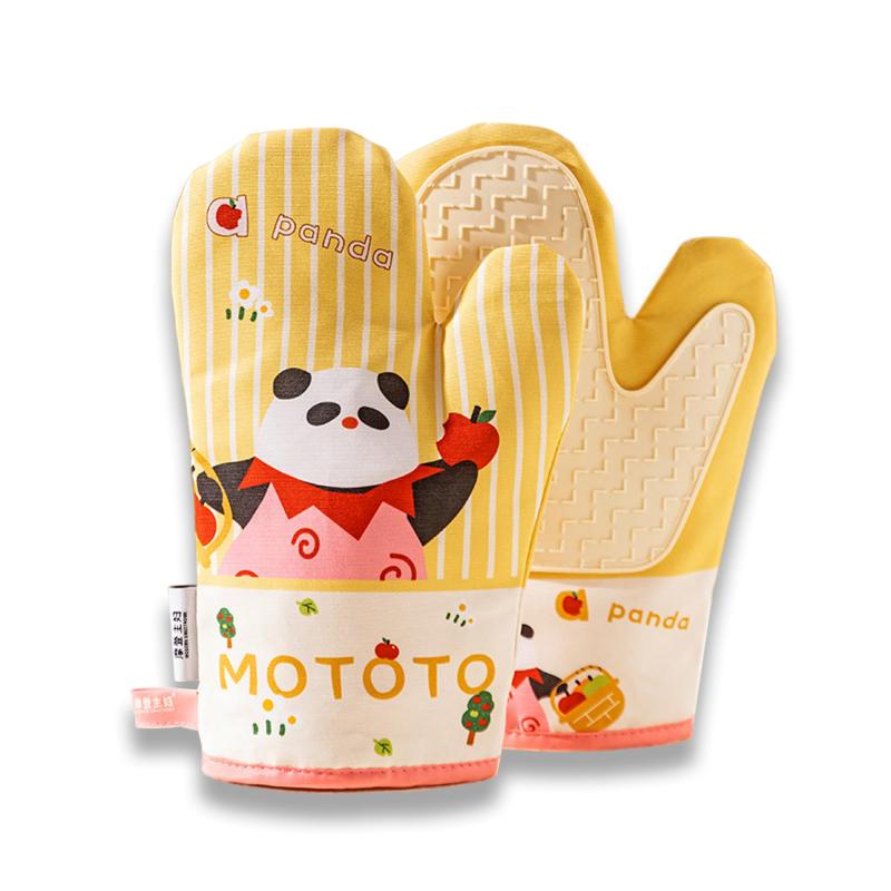耐熱ミトン オーブンミトン 鍋つかみ 耐熱グローブ オーブングローブ パンダ柄 300℃耐熱 やけど防止 滑り止め シリコン製 汚れが目立たず 耐久性 電子レンジ オーブンレンジ ケーキを焼く