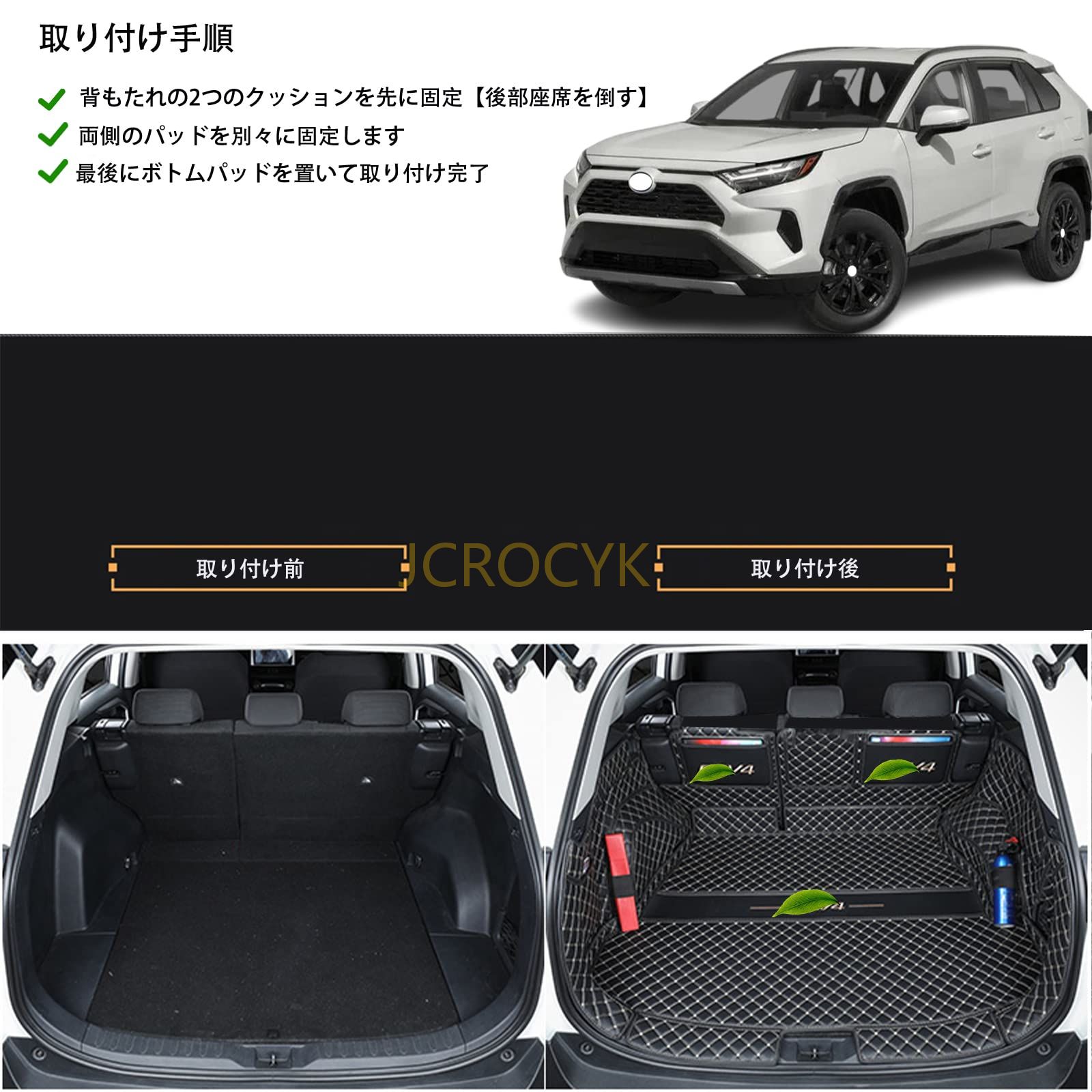 専用カートランクマットトヨタ 新型 RAV4 50系(T-O-YOTA RAV4 )。型式:MXAA52/MXAA54/AXAH52/AXAH54。年式:2019年4月-2022年 フルカバーレザーオートブーツマットに対応。 設計の詳細元の車に完全に適合し、砂やほこりの侵入を効果的に防ぎ、元の車の機能を保持し、正確に切断し、元の車の機能の使用に影響を与えません,後部座席は、より良いオリジナル車のスエード革を保護することができます。 素材本製品は高品質のXPEレザーで作られています。環境にやさしく、人体に無味無害です。低密度ポリエチレン素材は、マットの柔らかさと耐久性を保証します。トランクを最大限に保護するための強力な耐スクラッチ性。 取り付けと清掃が簡単時間を節約し、マットを正しい位置にすぐに置いて使用するだけで、15分未満で完了します。ラゲッジマットが汚れていなければ、タオルで拭きます。汚れがひどい場合は、取り外して石鹸と水で洗い流し、新しいクッションと交換してください。(製品はコンビネーションインストールです。 付属のベルクロを使用して固定してください。) アフターサービスはバイヤーに最高のショッピング体験を提供することを約束します。弊社製品の全責任を負いますので、ご不明な点がございましたら、お気軽にお問い合わせください。満足のいく答えが得られます。>>>>>>>>