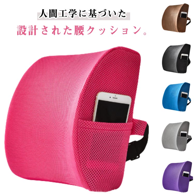 人間工学に基づいた設計された腰クッション。頭から腰にかけてのD字カーブをしっかり支えます。背筋が自然に伸びることで腰への負担を減らします。低反発メモリーフォーム素材を採用。柔らかすぎず硬すぎない適度な反発力で体圧を分散することで長時間座っていても快適です。日々のオフィスワークや長距離運転などが多い方、テレワークの方など快適に座りたい方にオススメです。椅子とズレにくいベルト付き◎クッションサイドにはポケットあり◎ サイズ 普通タイプ ジェル付きタイプ サイズについての説明 34*32*12cm ※サイズ表の実寸法は商品によって1-2cm程度の誤差がある場合がございます。 素材 低反発メモリーフォーム ジェル ポリエステル 色 起毛カバー/ブラック 起毛カバー/コーヒー 起毛カバー/ブルー 起毛カバー/グレー 起毛カバー/パープル 起毛カバー/バラレッド メッシュカバー/ブラック メッシュカバー/コーヒー メッシュカバー/ブルー メッシュカバー/グレー メッシュカバー/パープル メッシュカバー/バラレッド 備考 ●サイズ詳細等の測り方はスタッフ間で統一、徹底はしておりますが、実寸は商品によって若干の誤差(1cm~3cm )がある場合がございますので、予めご了承ください。 ●製造ロットにより、細部形状の違いや、同色でも色味に多少の誤差が生じます。 ●パッケージは改良のため予告なく仕様を変更する場合があります。 ▼商品の色は、撮影時の光や、お客様のモニターの色具合などにより、実際の商品と異なる場合がございます。あらかじめ、ご了承ください。 ▼生地の特性上、やや匂いが強く感じられるものもございます。数日のご使用や陰干しなどで気になる匂いはほとんど感じられなくなります。 ▼同じ商品でも生産時期により形やサイズ、カラーに多少の誤差が生じる場合もございます。 ▼他店舗でも在庫を共有して販売をしている為、受注後欠品となる場合もございます。予め、ご了承お願い申し上げます。 ▼出荷前に全て検品を行っておりますが、万が一商品に不具合があった場合は、お問い合わせフォームまたはメールよりご連絡頂けます様お願い申し上げます。速やかに対応致しますのでご安心ください。