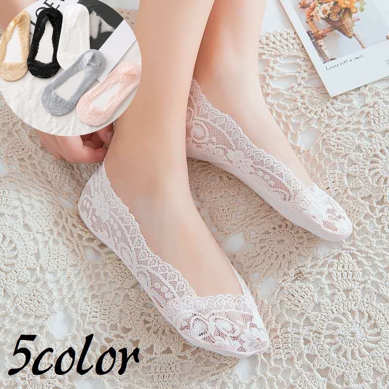 フットカバー 滑り止め 送料無料 レース おしゃれ かわいい 5足セット 靴下 パンプス ソックス 快適 極薄 くつした ズレない 大人 総レース 履きやすい インナーソックス 脱げにくい かかと 浅履き カバーソックス スリッポン 素足 無地 レディース