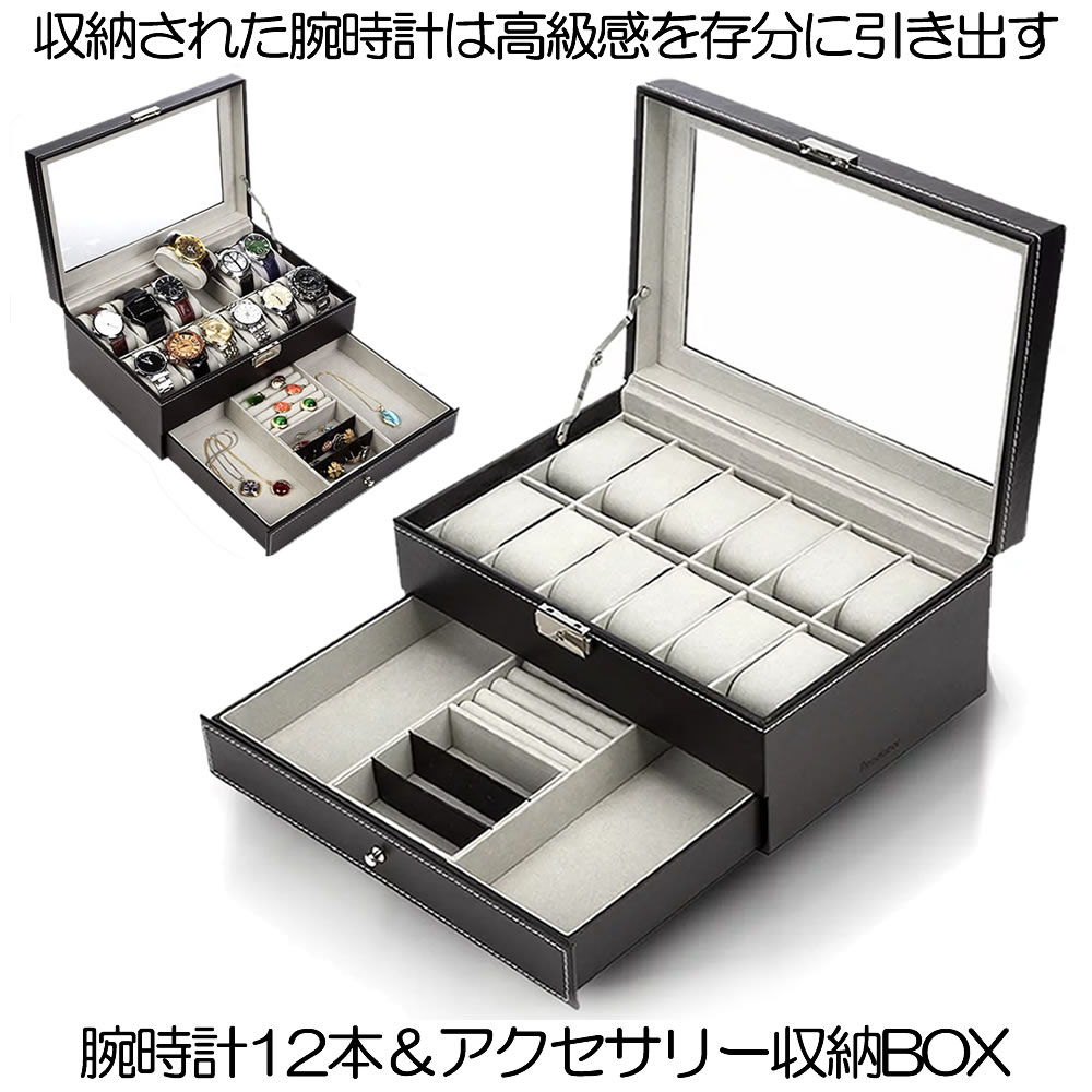 半 額 & 1 0 %OFF★1日0時~ 時計ケース 収納ケース 12本 ウォッチケース 時計収納 腕時計 ブラック メンズ レディース ウォッチスタンド 父の日 おしゃれ プレゼント 贈り物 兼用 ケース 小物 ウォッチケース 収納BOX インテリア 保管 保存 収納ボックス