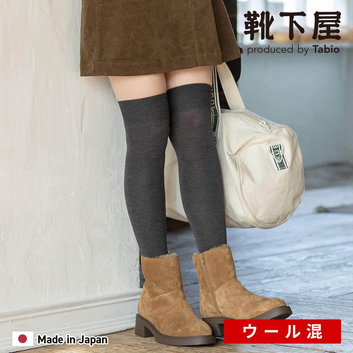 【全品送料無料&ポイント10倍〜12/11 23:59迄】【公式 靴下屋】 毛混 べタ ニーハイ ソックス / 靴下 タビオ Tabio くつ下 ニーソ オーバーニー 太もも ひざ上 無地 ウール ウール混 ルーズ 白 黒 グレー 秋 冬 レディース 日本製