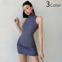 送料無料 ワンピース ノースリーブ レディース タイト ショート丈 ミニ丈 膝上 ハイネック 無地 セクシー おしゃれ かわいい 女性用