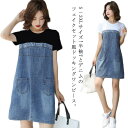 S−3XLサイズ!夏ワンピース 半袖 デニムワンピース ワンイース デニムワンピ ドッキングワンピース デニム 半袖ワンピース 膝上丈aライン 大きサイズ カジュアル キレイめ 春夏 送料無料