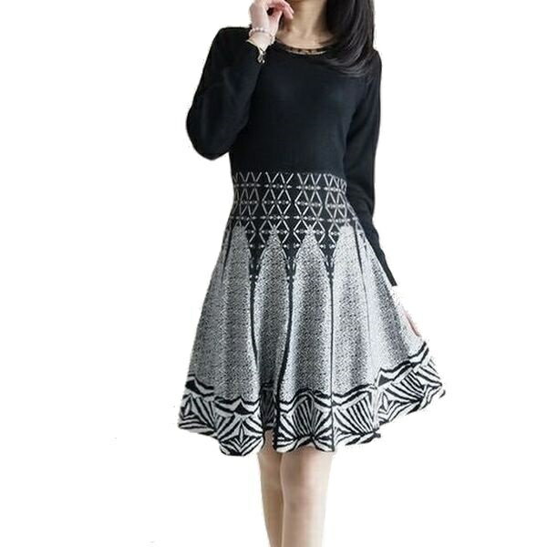 【30%OFFクーポン対象】ニット レディース ニットワンピース 長袖 黒 フレア 大人かわいい きれいめ 柄 ストライプ 素敵 ニットワンピ フレアワンピース 長袖ワンピース 長袖ニット 秋 冬 大きいサイズ ミディアム ひざ上 膝丈 秋冬 ニット