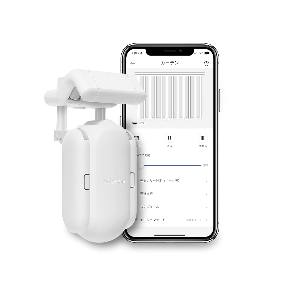 特殊:B0CB7ZN6HWコード:0850046603488ブランド:スイッチボット(SwitchBot)規格:W2400000商品カラー: 白商品サイズ: 高さ20.5、幅7.1、奥行き7.8 カーテン レールに取付簡単 工事 配線は一切不要、誰でもワンタッチで設置完了。工事が苦手な方でも手軽に導入でき、簡単で快適なスマートライフを楽しめます。本体はカーテンの裏に隠れ、お家のインテリアに馴染みやすいです。 呼吸のような静かさで、日の出のように優しく 世界初のQuietDriftモード搭載。秒速5 、運転音25dB以下で、ゆっくりと静かにカーテンを開閉し、日の出や雲の隙間から差し込む日差しのように優しく、少しずつ光をお部屋へ取り込みます。朝が苦手な人、生活リズムを整えたい人にオススメです。 ソーラーパネル3 別売り と併用し、半永久的な給電を実現 曇りの日でも充電可能であり、充電効率が2倍にUP また、アプリで日当たりの良いスポットを設定すれば、設定された時間に自動でそのスポットまで移動し充電を開始します。パネルの向きは自由に調節できます。直射日光を当てるように調整することで、より効率的な充電が可能です。 コンパクトなのにパワフル 高性能モーターを内蔵しており、前モデル「カーテン2」と比較すると力が2倍に向上しました。最大15kgのカーテンも開閉可能です。大きな窓や重いカーテンを使用している家庭でも安心してご利用いただけます 様 な操作方法 アプリ/Touch&Go/音声操作/タイマー/光センサ/リモートボタン 別売り /Apple Watch/Matter。操作スタイルは8種類、ニーズに合わせた自由な操作を。 声だけでカーテンを操作 SwitchBotハブシリーズとの併用で、「Alexa、Google Assistant、SmartThings、IFTTT」などのサードパーティーサービスから音声操作が可能になります。手が離せない時や、スマホが手元にない時、音声操作でさらに便利。› もっと見る カーテン レールに取付簡単 工事 配線は一切不要、誰でもワンタッチで設置完了。工事が苦手な方でも手軽に導入でき、簡単で快適なスマートライフを楽しめます。本体はカーテンの裏に隠れ、お家のインテリアに馴染みやすいです。 呼吸のような静かさで、日の出のように優しく 世界初のQuietDriftモード搭載。秒速5 、運転音25dB以下で、ゆっくりと静かにカーテンを開閉し、日の出や雲の隙間から差し込む日差しのように優しく、少しずつ光をお部屋へ取り込みます。朝が苦手な人、生活リズムを整えたい人にオススメです。 ソーラーパネル3 別売り と併用し、半永久的な給電を実現 曇りの日でも充電可能であり、充電効率が2倍にUP また、アプリで日当たりの良いスポットを設定すれば、設定された時間に自動でそのスポットまで移動し充電を開始します。パネルの向きは自由に調節できます。直射日光を当てるように調整することで、より効率的な充電が可能です。 コンパクトなのにパワフル 高性能モーターを内蔵しており、前モデル「カーテン2」と比較すると力が2倍に向上しました。最大15kgのカーテンも開閉可能です。大きな窓や重いカーテンを使用している家庭でも安心してご利用いただけます 様 な操作方法 アプリ/Touch&Go/音声操作/タイマー/光センサ/リモートボタン 別売り /Apple Watch/Matter。操作スタイルは8種類、ニーズに合わせた自由な操作を。 声だけでカーテンを操作 SwitchBotハブシリーズとの併用で、「Alexa、Google Assistant、SmartThings、IFTTT」などのサードパーティーサービスから音声操作が可能になります。手が離せない時や、スマホが手元にない時、音声操作でさらに便利。› もっと見る発送サイズ: 高さ20.5、幅19.6、奥行き9.1発送重量:880ブランド紹介 お得な情報を見るストアにアクセス お得な情報を見るストアにアクセス お得な情報を見るストアにアクセス お得な情報を見るストアにアクセス 商品の説明SwitchBot、IoTデバイス累計販売台数No.1SwitchBotカーテン3、今あるカーテンレールにワンタッチでスマートに。ご購入前に対応レール種類と寸法をご確認ください。詳細は下記にてご参照ください。アプリの「よくあるご質問」 「サポートページ」 「カーテン」 「ご購入前の確認」 「対応カーテンレールの種類とサイズの測り方をご紹介します 」工事 配線は一切不要、誰でもワンタッチで設置完了 呼吸のような静かさで、日の出のように優しく秒速5 、運転音25dB以下で、ゆっくりと静かにカーテンを開閉し、朝の暖かい太陽光を少しずつお部屋に取り込みます。朝が苦手な人、生活リズムを整えたい人にオススメです 市販の約99%のカーテンレールに対応賃貸物件にお住いの方、広範囲で多くのカーテンをスマート化したい方、築年数の古い物件にお住いの方にオススメです。 コンパクトなのに、パワフル工事不要、取付簡単 「QuietDrift」搭載 ポールタイプに対応 15 まで対応毎日3時間日の光に当てるだけ、ソーラー充電でバッテリー切れの心配不要曇りの日でも充電可能コンデンサを増やし、わずかな日光量でもしっかり吸収。貯水池と同様の原理で電流を貯め、まとめてカ