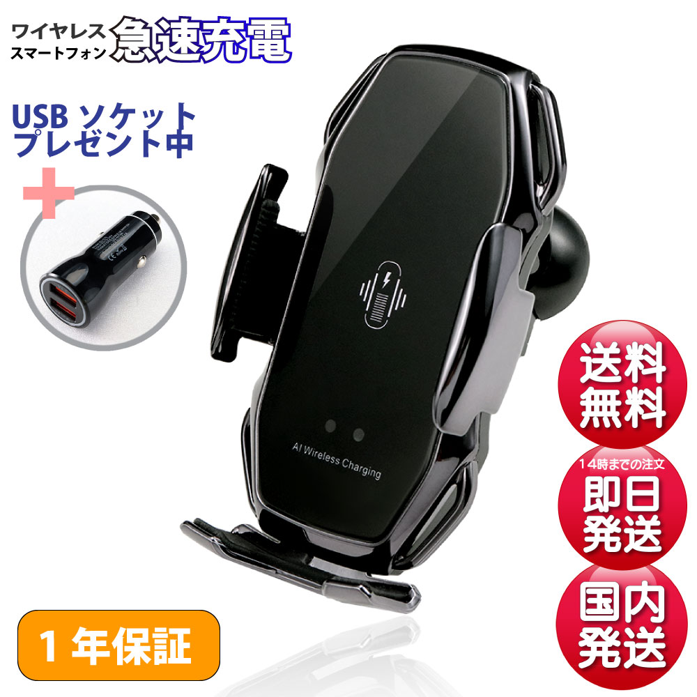 【楽天1位獲得】スマホホルダー 車 Qi 対応 車載ホルダー ワイヤレス充電 自動開閉 最大15W出力 スマートセンサー スマホスタンド 車載用 充電 充電器 急速充電 TypeC USB ケーブル 各種 スマホ iPhone Android JA620 JAPAN AVE.