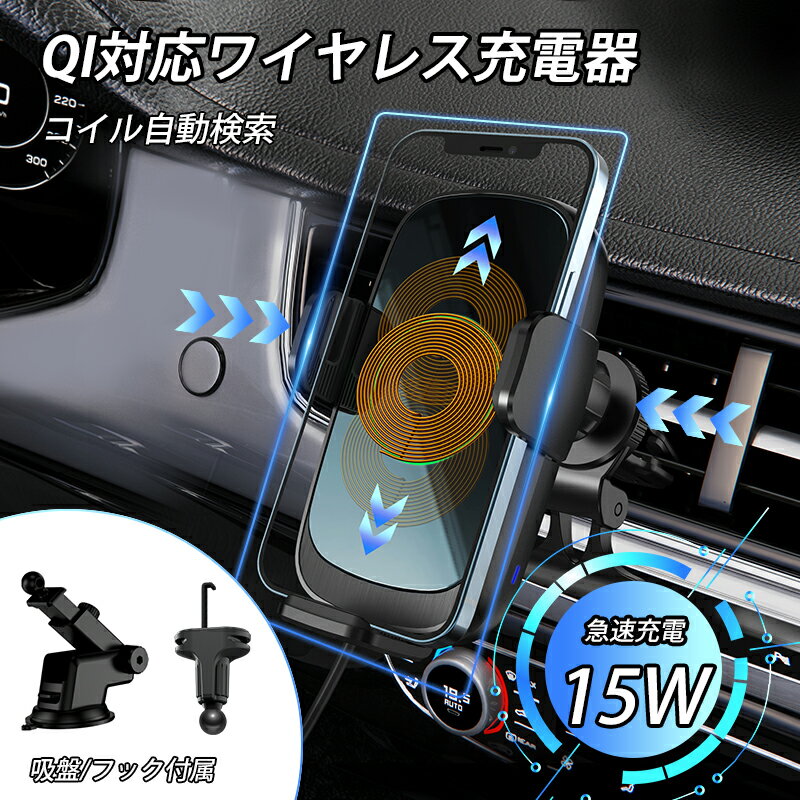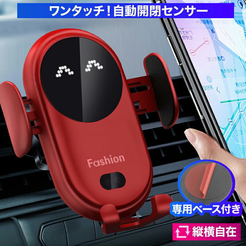 スマホホルダー 車 充電 置くだけ 充電 iPhone 車載ホルダー 充電器 スマホ ワイヤレス充電 自動開閉 スマホホルダー 車 エアコン Qi おしゃれ 車 オデッセイ 吸盤 ワイヤレス充電 チー 動画撮影 手帳型 折り畳み式 エブリィ アルファード レクサス エンジン停止 クリップ スマホホルダー 車載ホルダー 車 充電器 Qi エンジン停止後も使用 自動開閉 車載ホルダー コードステッカー付き ダッシュボード 吸盤式 エアコン吹き出し口 ワイヤレス充電 送料無料 【自動開閉式の車載用スマホホルダー】スマホQiワイヤレス充電器 使い方は簡単!スマホを置くとセンサーが感知し即座に自動ロック取り外しもサイドセンサーボタンをワンタッチでOKです。便利な予備電力内蔵機能でエンジン停止後も約20分間は開閉可能充電しながらスマホ使用可能なんで長距離ドライブも安心です。【QC3.0急速充電規格】 ワイヤレス充電最速15W出力対応・iPhone13 5W〜7.5ZW(通常充電)・Xperia XZ3 Galaxy S9 10W・一部のAndroid 15W※QC3.0充電機能を最大限に発揮するためには7.5W以上の車載USBポートまたは規格対応のUSBチャージャーが必要です。■それだけではありません、まだまだ便利機能満載です♪強力ゲル吸盤でガッチリ固定付属のマウントでエアコン吹出口への装着も可能●取付にくい箇所には安心の吸盤用補助プレート付きです。【商品セット内容】ゲル吸盤付本体エアコン吹出し口用マウントUSBタイプCコード吸盤用補助プレートコードステッカー9個日本語取り扱い説明書付き※Qi2.0/3.0搭載のスマホのみ充電可能です。※厚めの手帳型ケースの場合、まれに充電しないことがあります。 5