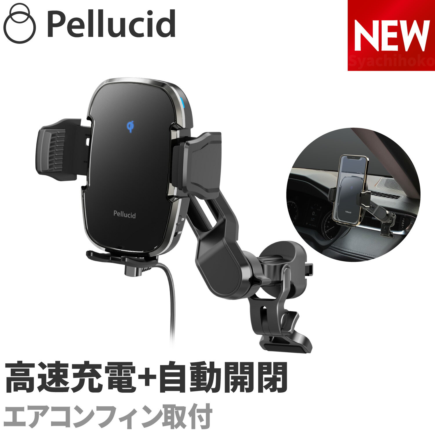 クリックして拡大 スマートフォン 充電器 携帯 スタンド すまほ ほるだーその他の取付例を見る トヨタ カローラクロス トヨタ シエンタ トヨタ ヤリスクロス/MXPJ10 トヨタ ライズ ホンダ N-BOX ホンダ N-BOX(NBOX)/6BA-JF5 ホンダ フィット ホンダ 新型フリード クロスター/6AA-GT6 ホンダ ステップワゴン 日産 ノート e-POWER/15E トヨタ アクア/トヨタ アルファード/トヨタ 新型ヴェルファイア・アルファード/トヨタ 新型ヴォクシー/トヨタ ヴォクシー・ノア/トヨタ カローラクロス/トヨタ カローラクロス/トヨタ シエンタ/トヨタ プリウス/トヨタ ヤリス/トヨタ ヤリスクロス/トヨタ ライズ/トヨタ RAV4/ホンダ ルーミー/ホンダ レジアスエース200系/ホンダ ヴェゼル/ホンダ ステップワゴン/ホンダ N-BOX/ホンダ N-BOX/ホンダ フィット/ホンダ 新型フリード クロスター/スバル レヴォーグ/日産 デイズ /日産 ノートe-POWER/マツダ CX-30/三菱 デリカD:5/スズキ ワゴンRスティングレー/Jeep レネゲード ダッシュボードが柔らかい場所(指で押すと凹む)には取付け出来ません。 ■対応機種 iPhone・Androidスマートフォン iPhone(SE 11 12 13 14 15 16 16e 17 iPhone air plus pro pro MAX mini等)、Xperia、AQUOS、Galaxy、Google Pixel等のスマートフォンに対応。 ■製品特徴 ・Qi対応のワイヤレス充電自動開閉スマホホルダーです。(Qi 正規認証品) ・オートスキャン機能搭載で充電スピードUP。オートスキャン機能により、スマホ充電部を自動検知。ホルダー充電部がスマホ充電部に自動で移動し、正確に位置を合わせる事が出来るため位置ズレによる充電ロスをなくし充電効率を最大化できます。 ・オートスキャンは約28mmの可動域で折りたたみスマホにも対応します。 ・スマホを置くだけでサイドアームが閉まるオートホールド&オートスキャン&ワイヤレス充電。(ワイヤレス充電対応機種のみ) ・キャパシタ(蓄電装置)内蔵で、エンジン停止後もサイドアームの開閉操作が可能です。エンジン停止後もスマホを取外す事が出来ます。 ・最大15W(Android)、最大7.5W(iPhone)の高速充電に対応。(ワイヤレス充電対応機種のみ) ・安全保護回路でスマホへの過充電を防止します。(過電流保護/過電圧保護/過熱保護/異物検知) ・ワイヤレス充電ON/OFF切替えスイッチ付き。 ・スマホの縦置き・横置き対応。 ・お好みの位置に合わせて前後伸縮ができる、ねじ固定不要ロングアーム。 ・車両側への傷を防止する傷防止パッド付き。 ・手帳型ケース・レザーケース・シリコーンケースをご使用の場合でもワイヤレス充電は可能ですが、ケースの厚みや形状により充電ができない場合がございます。 注意:ダッシュボードが柔らかい場所(指で押すと凹む)には取付け出来ません。 ■仕様 メーカー名 ペルシード Pellucid 品番 PPH2305 商品名 ペルシードワイヤレス充電スマホホルダー ロングアーム吸盤 カラー ブラック 対応サイズ 幅:約55〜88mm/厚み:約20mmまで/重さ:約250g以下 吸盤部サイズ 直径約64mm セット内容 ホルダー本体×1/ロングアーム吸盤×1/吸盤補助シート×1(直径約73mm)※基本的に吸盤のみで設置可能ですが、設置場所の状況により吸盤補助シートをご利用ください。/USB(A-C)ケーブル×1/傷防止パッド×1/取扱説明書×1 ダッシュボード吸盤タイプ一覧 PPH2305 ワイヤレス充電+自動開閉+キャパシタ+オートスキャン PPH2308 ワイヤレス充電+自動開閉+キャパシタ PPH2108 ロングアームワンタッチ開閉 PPH2107 ワンタッチ開閉
