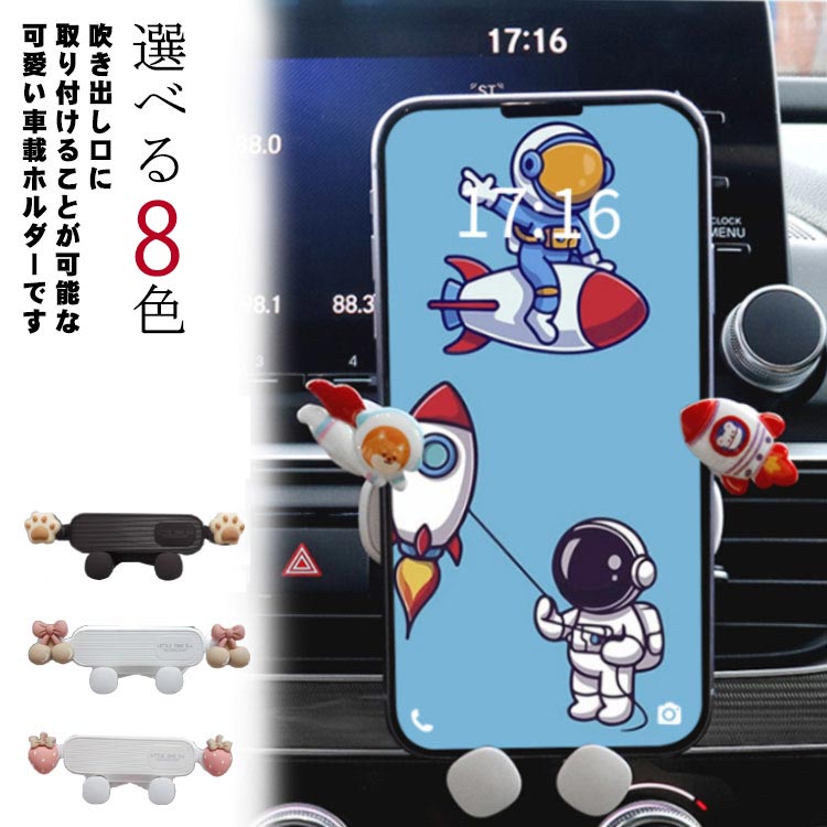 車載ホルダー スマホスタンド 車載ホルダー ホルダー 汎用 車 スマホ 携帯ホルダー スマートフォンホルダー 可愛い 車載用 吹き出し口 スマホホルダー 滑り止め フォンホルダー 自動開閉 360回転 便利 軽量 iphone Android 多機種対応