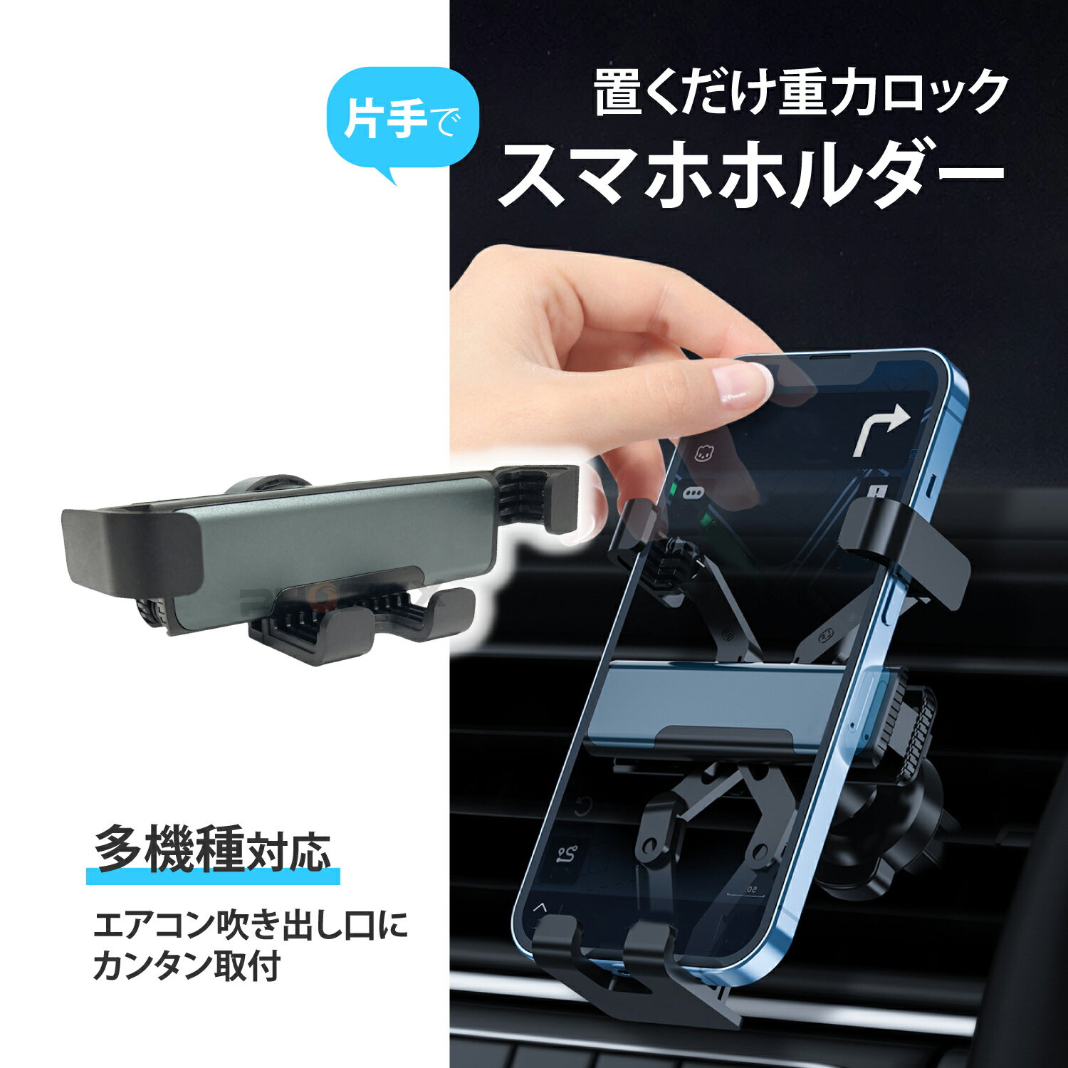 スマホホルダー 車 エアコン 吹き出し口 車載ホルダー スマホスタンド 携帯ホルダー 重力開閉 片手操作 自動開閉 縦 超小型 軽量