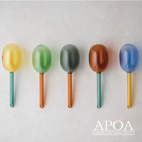 サイズ Lサイズ φ65 × h225mm(容量:150cc) 素材 耐熱ガラス 原産国 中国 ご注意 植物は付属しておりません。 ご使用の際は、棒などで土に下穴をあけてから挿し込んでください。 製造の工程上、細かな気泡・傷・黒い斑点・フチの歪みなどが生じる場合がございます。 またサイズや厚みなどに若干の個体差がございます。予めご了承ください。 配送について 北海道・ 沖縄・離島・一部地域への配送は、 別途送料をいただきますのでご了承下さいませ。自動で排水をコントロールしてくれるおしゃれなディスペンサー ◇ 見た目も美しく、とても機能的な「WATER DISPENSER」 植物を育てる際、多くの方が苦手と感じるのが「水やり」なのでは。 ついつい水やりを忘れてしまって、いつの間にか植物の元気が なくなってしまった...なんてこともありますよね。 そんな苦手を、見た目も美しく解決してくれるのがこの「ウォータディスペンサー」です。 土壌中の水分が不足した場合、自動的に水が排出される仕組みになっていて、 観葉植物だけでなく、多肉植物やサボテンなど、毎日水やりを必要としない植物にもぴったりです。 植物への水のやり忘れ、やり過ぎを簡単にコントロールしてくれ グリーン初心者さんにもオススメのアイテムです。 ◇ シンプルで簡単な仕組み 斜めにカットされた部分から水や肥料を入れて、土に挿すだけ。 挿し込む角度によって水が落ちてくるスピードが変わります。 60°くらいで約1日、80°くらいだと約2日かけて水が落ちてきて、ゆっくりと土に水が 浸透するので、根腐れの心配が軽減されます。 水が無くなったのも一目で確認できるので安心。 Lサイズはたっぷり150ml入ります。 ◇ 生き生きとした植物に癒される このディスペンサーをつけたことによって、植物を眺める頻度も増えてきたなんて声も。 元気で生き生きとした植物たちを見るだけで、こちらも癒されますよね! 水の代わりに液体肥料を用いることで、成長の促進にもご使用いただけます。 植物の成長時期に合わせて、水と肥料を使い分けるのもおすすめです。 ◇ワクワクするカラー 見た目も美しく、とても機能的なWATER DISPENSER 2色の耐熱ガラスを組み合わせて作られており、どの組み合わせのカラーも おしゃれでワクワクするカラーリングばかりです。 ぜひ植物と相性のよいカラーリングを見つけてみてください。 専用BOXに入っているので、植物好きな方へのプレゼントにもおすすめですよ。 ▼WATER DISPENSER「 Sサイズ」はこちら ▼WATER DISPENSERと合わせてのご使用におすすめな「ART STONE」シリーズはこちら 製造の工程上、細かな気泡・傷・黒い斑点・フチの歪みなどが生じる場合がございます。 またサイズや厚みなどに若干の個体差がございます。予めご了承ください。 【 amabro(アマブロ) 】 2006年より活動開始。コンセプトは表現の再構築。 既に存在しているさまざまなジャンルの創造物を見つめ直し、 amabroが考えるアートの視点から作品を企画し生産するプロジェクト。 現在の生活に即したプロダクトとアートの橋渡しが出来るように、 多方面とコラボレーションも精力的に展開されています。 アマブロのラインナップはこちら サイズ Lサイズ φ65 × h225mm(容量:150cc) 素材 耐熱ガラス 原産国 中国 ご注意 植物は付属しておりません。 ご使用の際は、棒などで土に下穴をあけてから挿し込んでください。 製造の工程上、細かな気泡・傷・黒い斑点・フチの歪みなどが生じる場合がございます。 またサイズや厚みなどに若干の個体差がございます。予めご了承ください。 配送について 北海道・ 沖縄・離島・一部地域への配送は、 別途送料をいただきますのでご了承下さいませ。