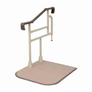 横向き、後ろ向きでも昇降しやすい。 ◆特徴 ・上がり框の上側・下側の手すりがそれぞれ調整できる ・横歩きの重心移動が安定しやすい水平な横手すり ・後ろ向きに降りやすい握れる縦手すり部分 材質 ○ベース・手すり・フレーム:スチール ○ベース縁ゴム:塩化ビニル樹脂 ○手すり構造部材:アルミニウム ○手すり被覆:塩化ビニル樹脂 ○支柱カバー:ポリプロピレン ジョイント:ポリアセタール ○端部キャップ:ポリブチレンテレフタレート ○マット:塩化ビニル樹脂 ○踏み台:スチール ○カーペット:合成繊維 重量:43.5kg サイズ:幅72.5×奥行76.5×手すり高さ72.5〜82.5cm 踏み台:幅51×30×10.8〜18cm(5段階調整)