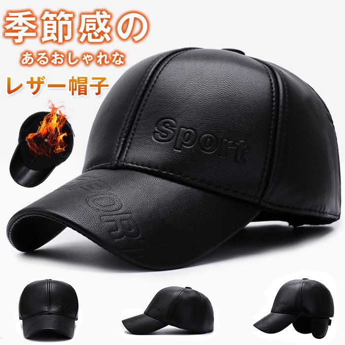 レザー キャップ 耳あて付き メンズキャップ 帽子 野球帽 裏起毛 防水 帽子 pu スポーツ 紫外線対策 シンプル カジュアル サイズ調整可能 秋冬 防寒帽 自転車 登山 釣り ゴルフ帽子 30代 40代 50代 60代 高齢者 祖父 クリスマスプレゼント
