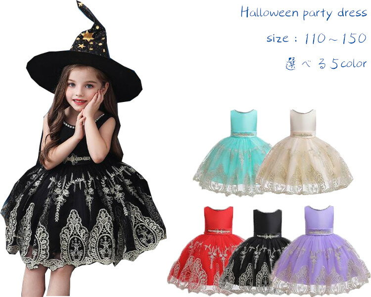 女の子 ハロウィーン衣装 ハロウィーン コスプレ 子供 ドレス Halloween party dress 子供服 チュールワンピース 花柄 コスチューム おばけ 変身 仮装用 帽子対応可 3色 110-150