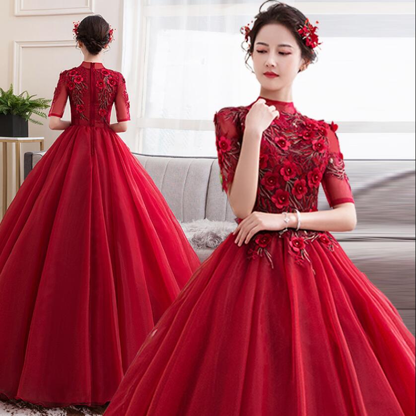 おしゃれ 送料無料 カラードレス 忘年会 結婚式 フォーマル 洋服 パーティー 成人式 着痩せ プリンセス イブニングドレス 二次会 ウエディングドレス マキシ丈ドレス卒業式入学式 袖あり 編み上げ 花柄 30代 ママ超可愛い 2色 刺繍 立ち襟 Party Dress S M L XL 2XL 3XL 4XL