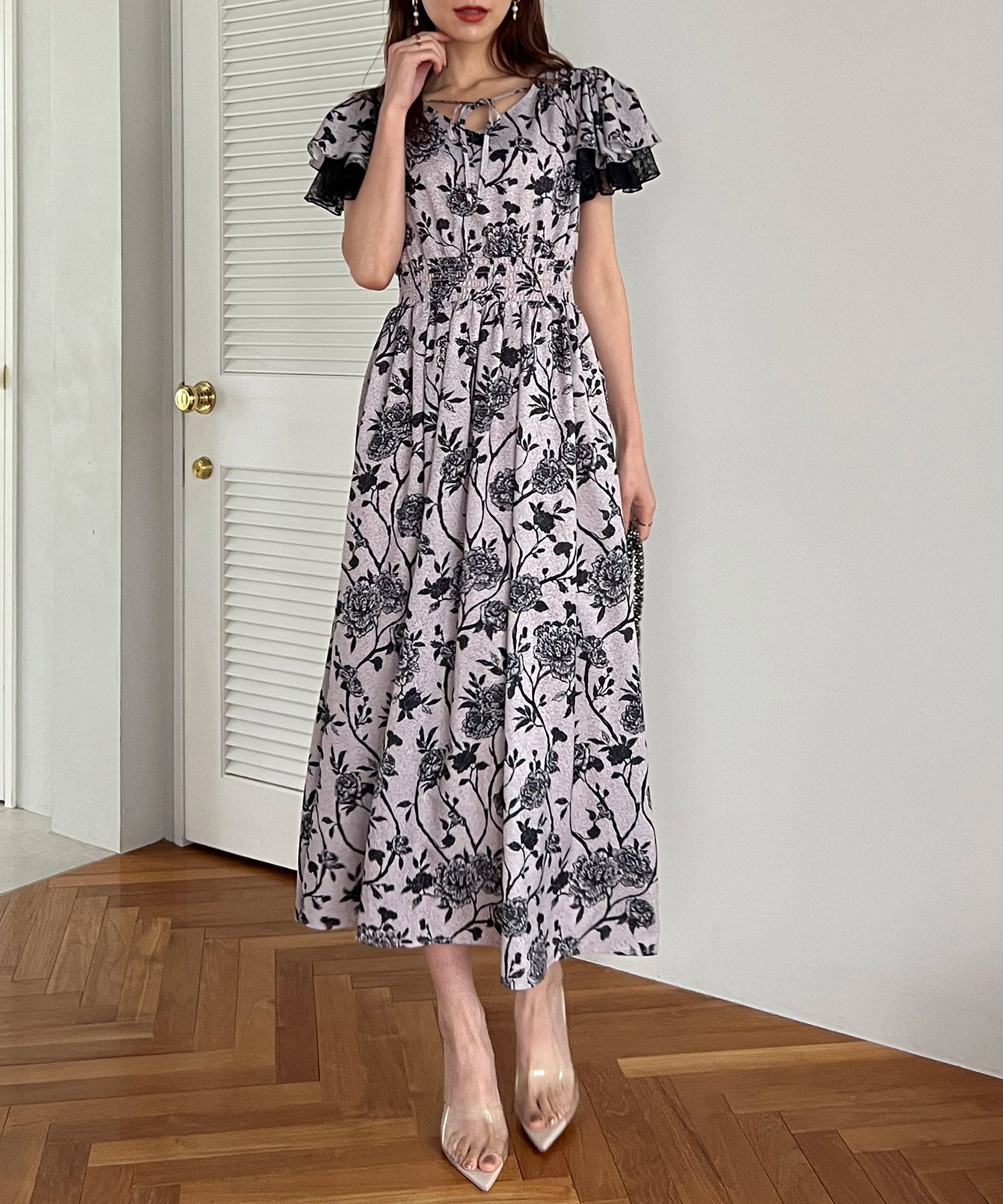 ROYAL PARTYオリジナルの花柄を施した存在感溢れるロングワンピース。歩くたびに華やかに揺れ動く上品なフレアシルエットが魅力です。袖口にあしらったレースや胸元のリボンがアクセントとなり女性らしさをプラス◎周りと差のつくこと間違いなしの主役級アイテムです!**********************透け感:なし裏地:あり伸縮性:なし光沢感:なし生地の厚さ:普通ファスナー:なし付属品:なし**********************【サイズ】FREE:バスト43cm|着丈123cm|袖丈18cm|肩幅32cm|ウエスト30cm※商品画像はサンプルのため、色味やサイズ等の仕様に変更がある場合がございますので、予めご了承下さい。こちらはアウトレット品です。主にはシーズン落ちの新品になりますが、中には細かな傷やシワ、若干の色落ち等がある場合がございます(訳あり品を除く)。FREE : 【着丈】123cm / 【肩幅】32cm / 【胸囲】43cm / 【袖丈】18cm / 【ウエスト】30cm別カラーはこちら! ベージュ