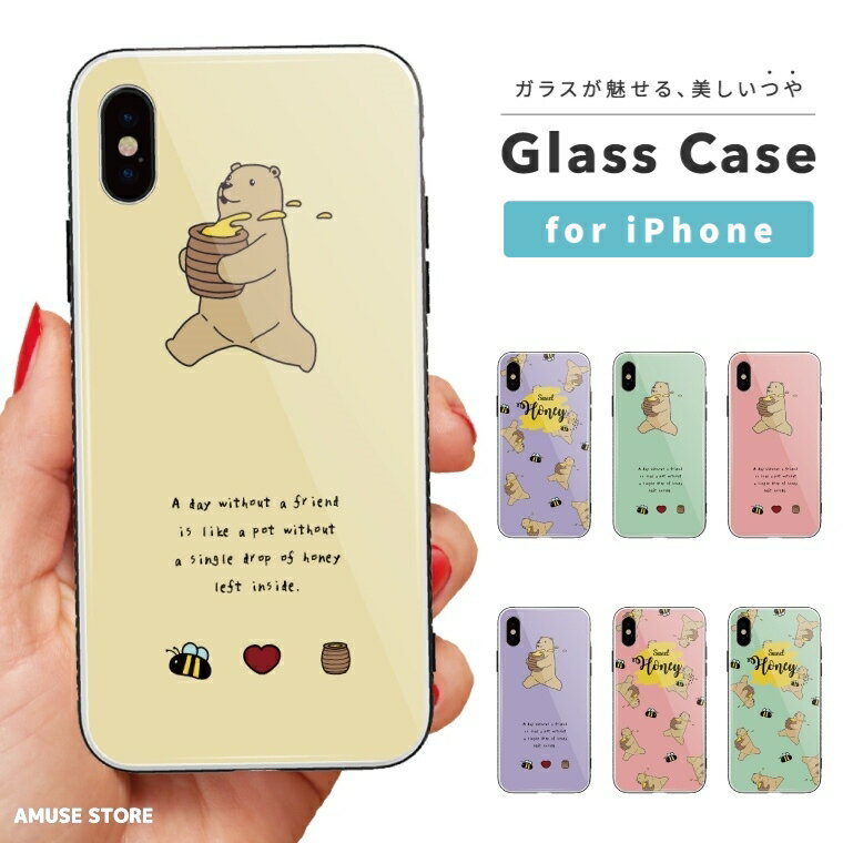 iPhone17 ケース ガラス iPhone16 iPhone16e スマホケース iPhone15 Pro iPhone14 Plus iPhone13 mini iPhone SE ケース TPUケース ガラスケース 韓国 おしゃれ くま はちみつ Miel ハニー