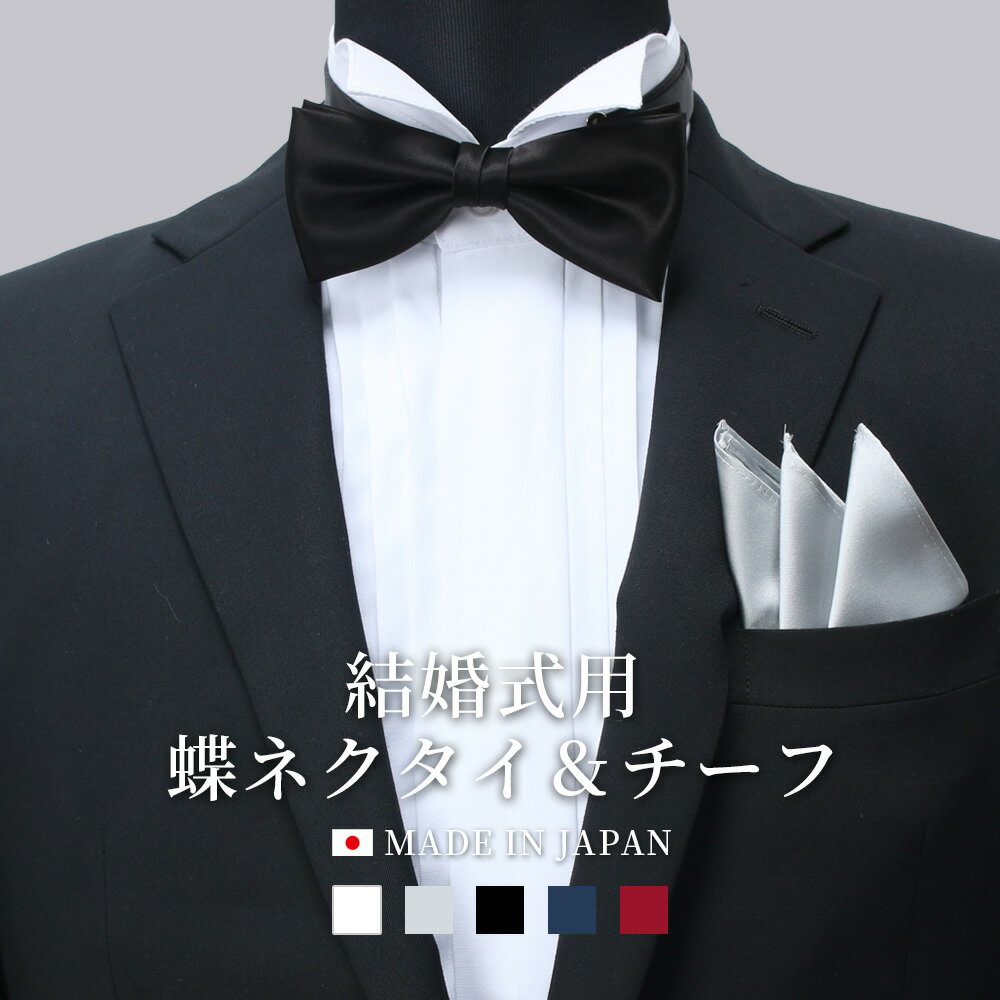 蝶ネクタイ&チーフセット フォーマル 結婚式 メンズ 紳士用 ボウタイ 蝶ネクタイ ポケットチーフ 無地 [ ワイン ネイビー ブラック シルバー ホワイト フォーマル 結婚式 ウェディング ブライダル おしゃれ スーツ ]【メール便送料無料】 [M便 2/5]
